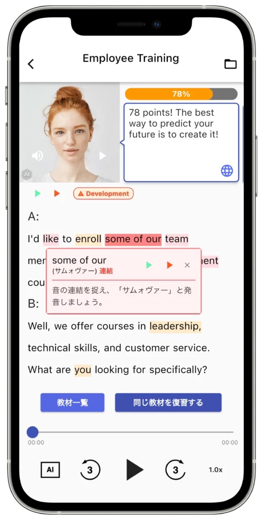 AIが正確な発音や認識できていない部分を教えてくれるから、聞き取れない原因がわかる。