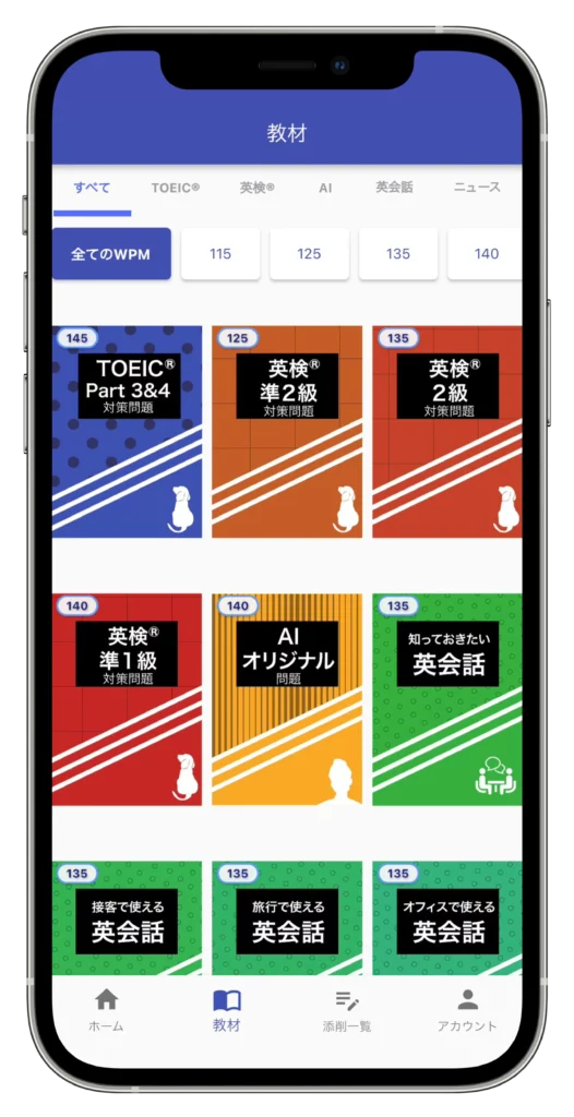 あなたのレベル、希望の試験対策にピッタリの教材を用意。最適なスピード・レベルでシャドーイングを開始しましょう。